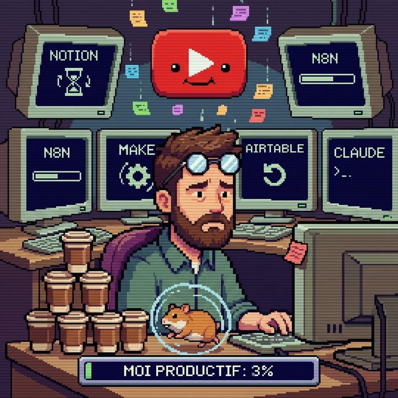 J'ai découvert Notion pendant le Covid. C'était enfin l'outil tout-en-un pour organiser ma vie pro et perso. J'ai ajouté Make, Airtable, n8n, Claude et les autres outils petit à petit, au gré des besoins.